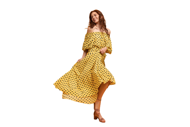 Don't miss out on this fashion-forward piece that combines style and sophistication. Embrace your inner fashionista and make heads turn with our pretty yellow head women dress!